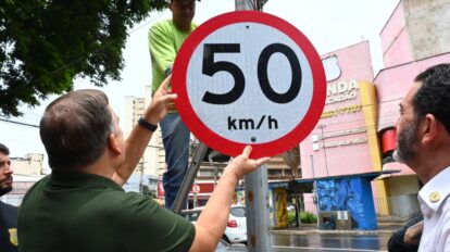 Mabel anuncia ajuste de limite de velocidade para 50 km em vias do Centro de Goiânia.