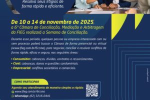 A Federação das Indústrias do Estado de Goiás (Fieg), por meio da 6ª Câmara de Conciliação, Mediação e Arbitragem (CCMA), promove de 10 a 14 de novembro, das...