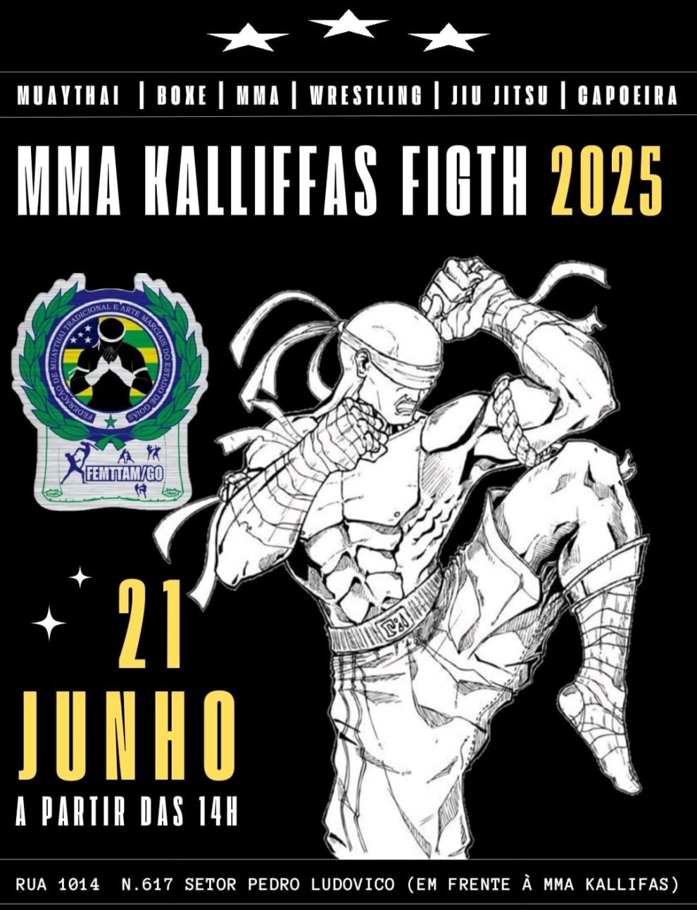 Trata-se do já tradicional MMA Kalliffas Figth 2025, que, dessa vez, reunirá 12 combates profissionais no ringue.